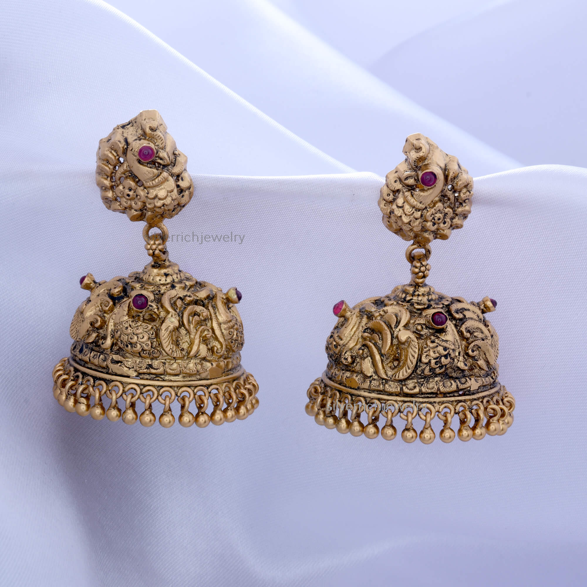 92.5 Silver gold plated jhumka with semi precious stones