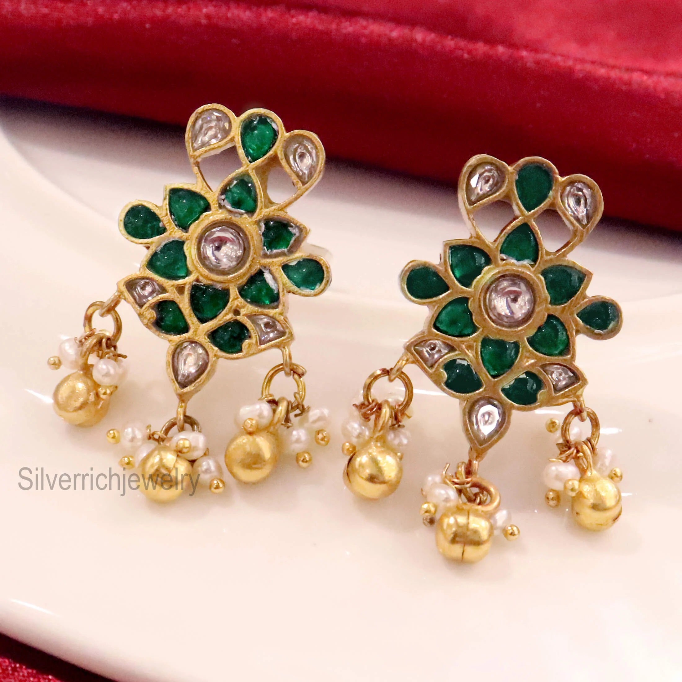 92.5 Silver gold plated stud with semi precious stones